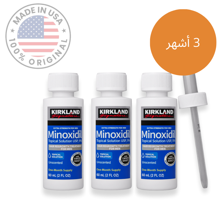 باك 3 قنينات مينوكسيديل كيركلاند %5 (3 × 60 مل) – كور كامل لـ3 شهور.
